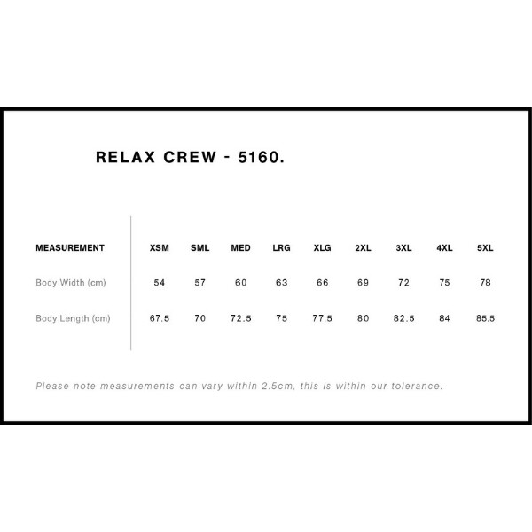 Relax Crew, crafted with a relaxed fit and mid-weight 320 GSM fabric blend of 80% cotton and 20% recycled polyester fleece. Features include a pullover crew design, drop shoulder, crew neck, and sleeve cuff ribbing, all accentuated by a tear-out label for a clean finish.
